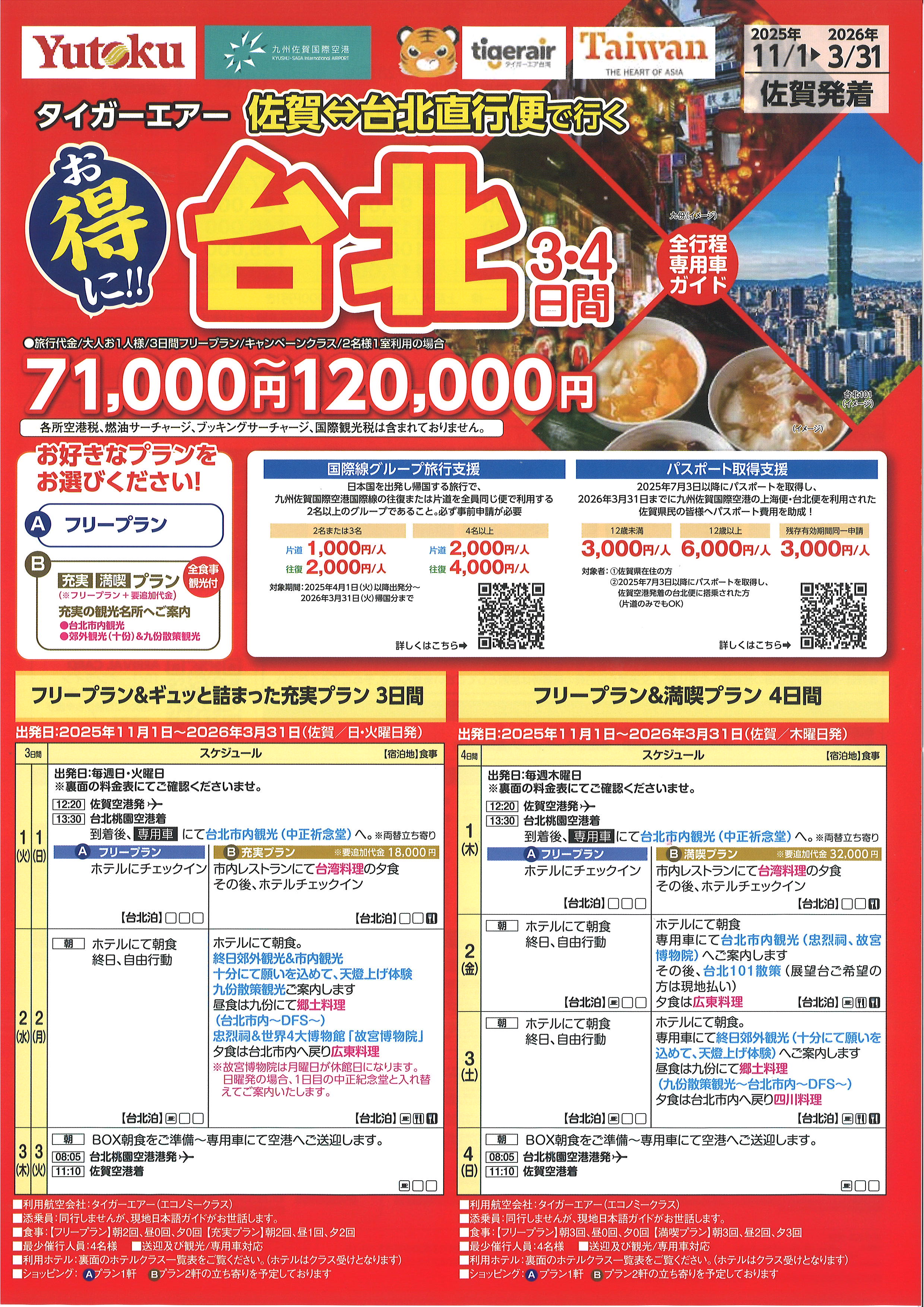 タイガーエアー 佐賀⇔台北 直行便で行く 台湾3・4日間